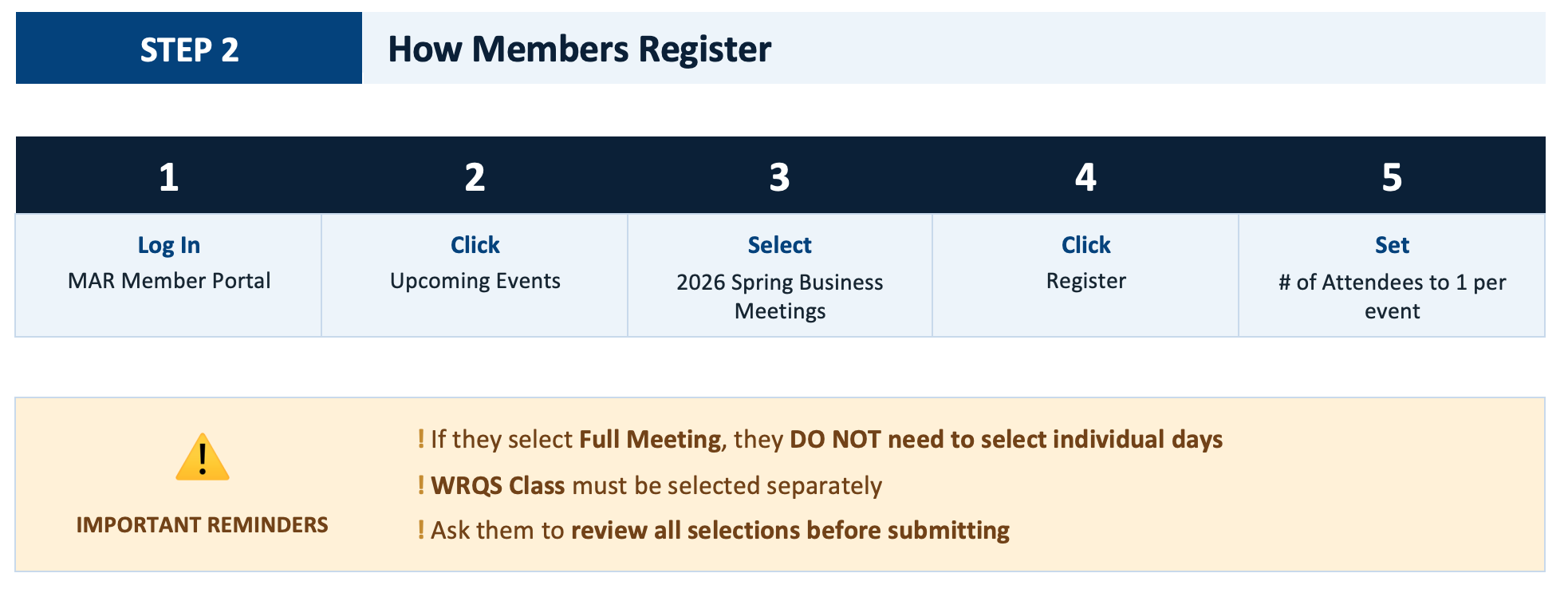 We have updated the registration structure to provide greater flexibility and better accommodate member attendance preferences. Please review the registration options below carefully.