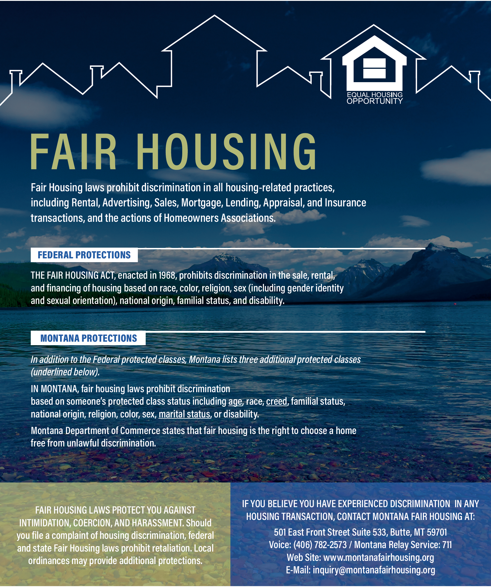 You may download either or both posters to display. Please follow the detailed regulations from HUD forproper display.